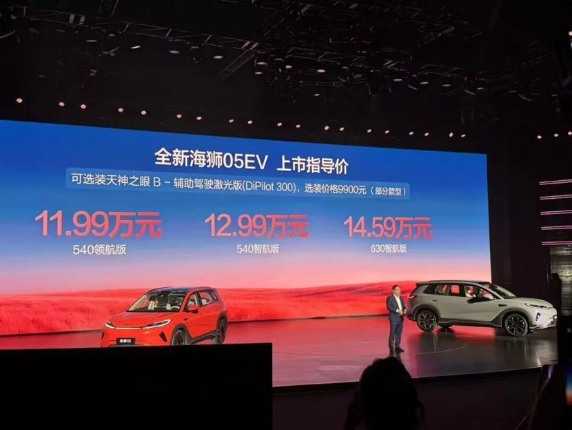 4月20日,比亚迪海洋网全新海狮05双车上市,其中全新海狮05 EV版就搭载了第二代刀片电池和闪充技术,售价为11.99-14.59万元,相比2025款车型略有提升,低配和中配版本高出2000元,顶配多出8000元左右。