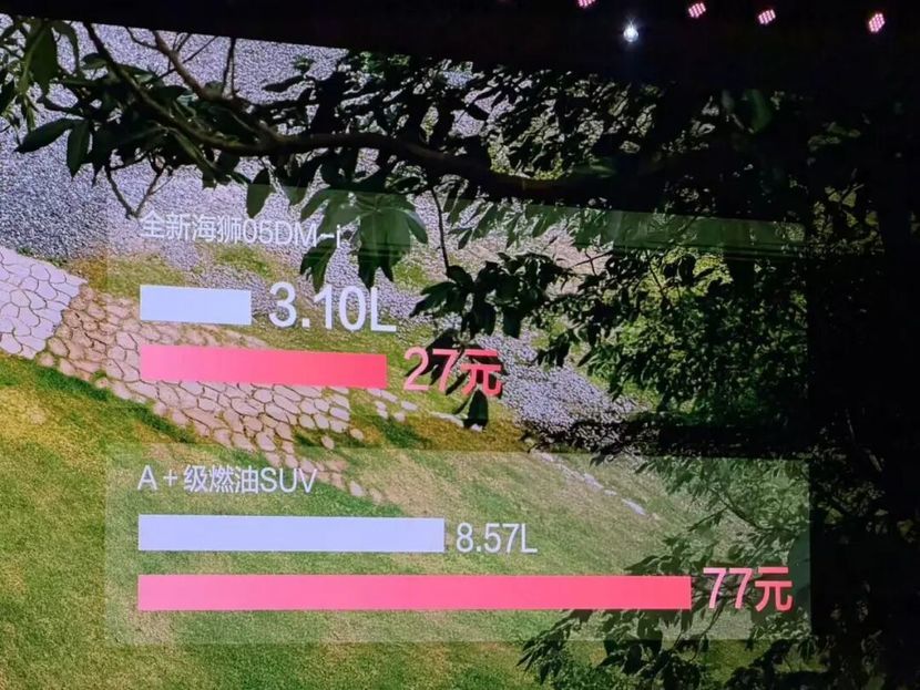 张卓现场给大家算了笔账,现在有些地方92号汽油价格已经涨到9元/L,如果按这个价格计算,全新海狮05DM-i跑100公里只用花27元,而一台A级燃油SUV百公里油耗大概在8.57L,那么同样跑100公里则需要花77元。一年算下来,海狮05DM-i至少能帮用户省下5000元,这是实打实的好处。