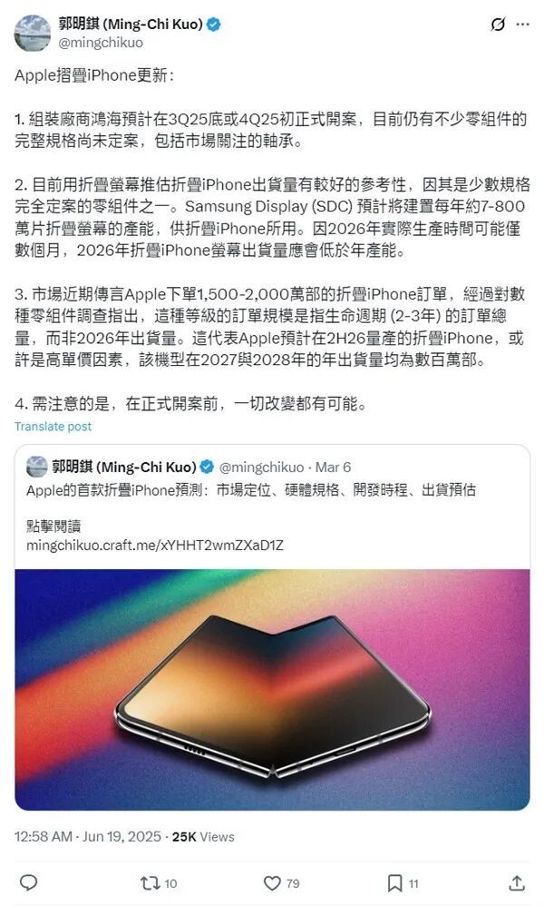 关于折痕问题,当前爆料均未特别提及苹果在这方面的突破——这或许意味着苹果会采用与三星相近的UTG(超薄玻璃)技术,将折痕控制在可接受范围,但并非完全消除。